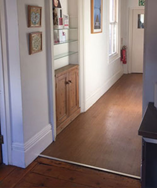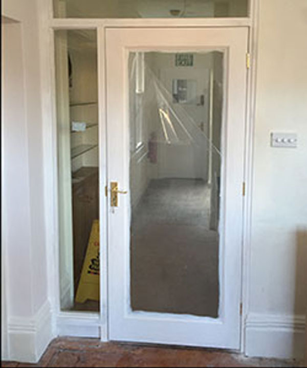 We built a new doorway incorporating a glazed door to create a new secure area from the entrance hall, whilst the beautiful wooden floors were sanded and finished with lacquer to enhance and protect.